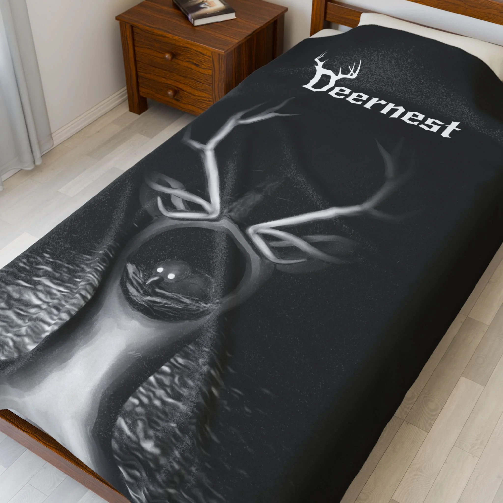 eernest — a Connecticut grunge-alternative metal band — into something warm and tactile. Imagine pulling this soft, medium-weight throw across your shoulders after a late show, the high-detail print on one side catching low light like a worn tour poster. It feels substantial without being stiff, draping easily over a couch or around your lap while you cue up the next track. The double-stitched edges mean it holds up to frequent use and travel, whether you’re heading to a rainy outdoor set or curled up for a deep-listen night. Meant for adult fans who want an everyday piece of band identity, this blanket blends stage grit with home comfort: dark, familiar, and quietly defiant.