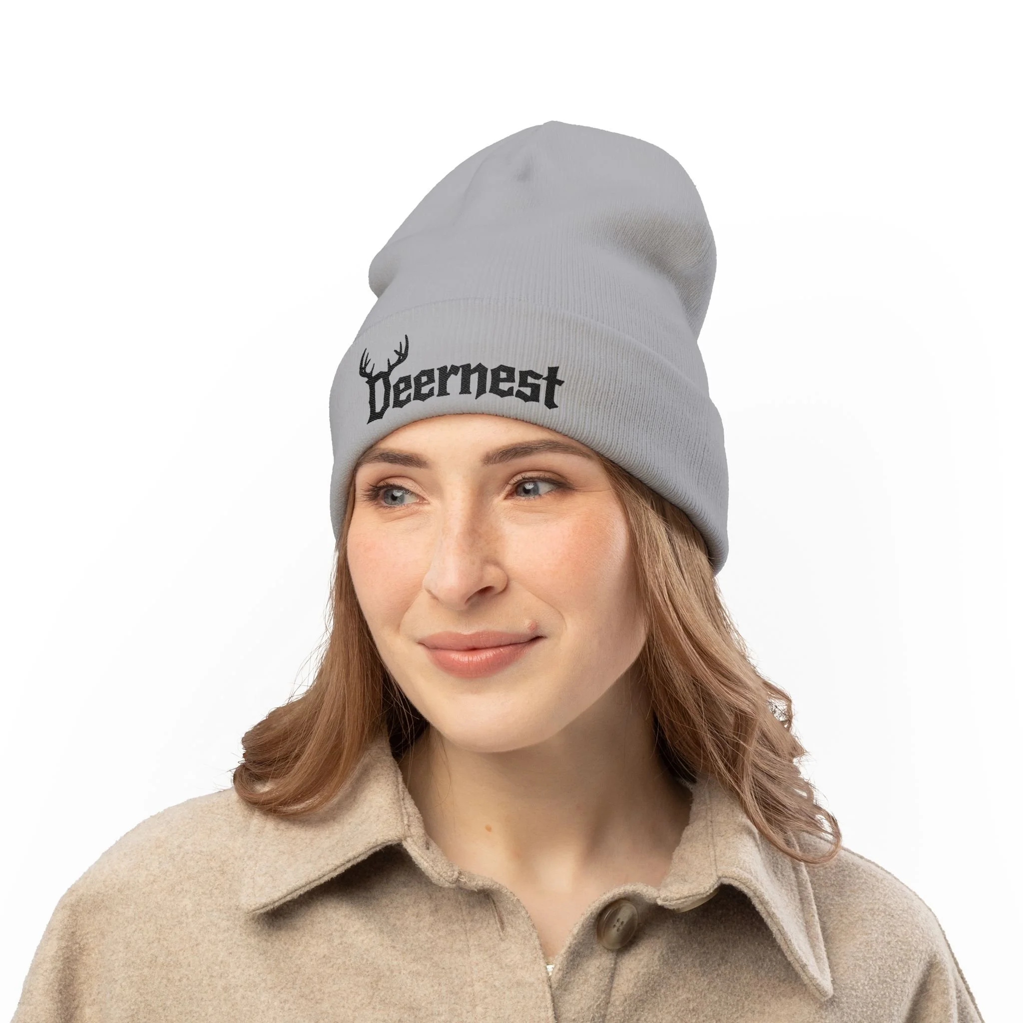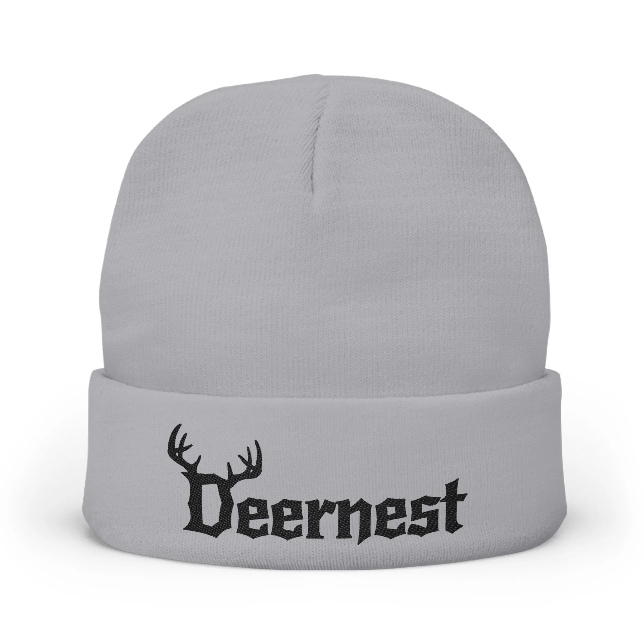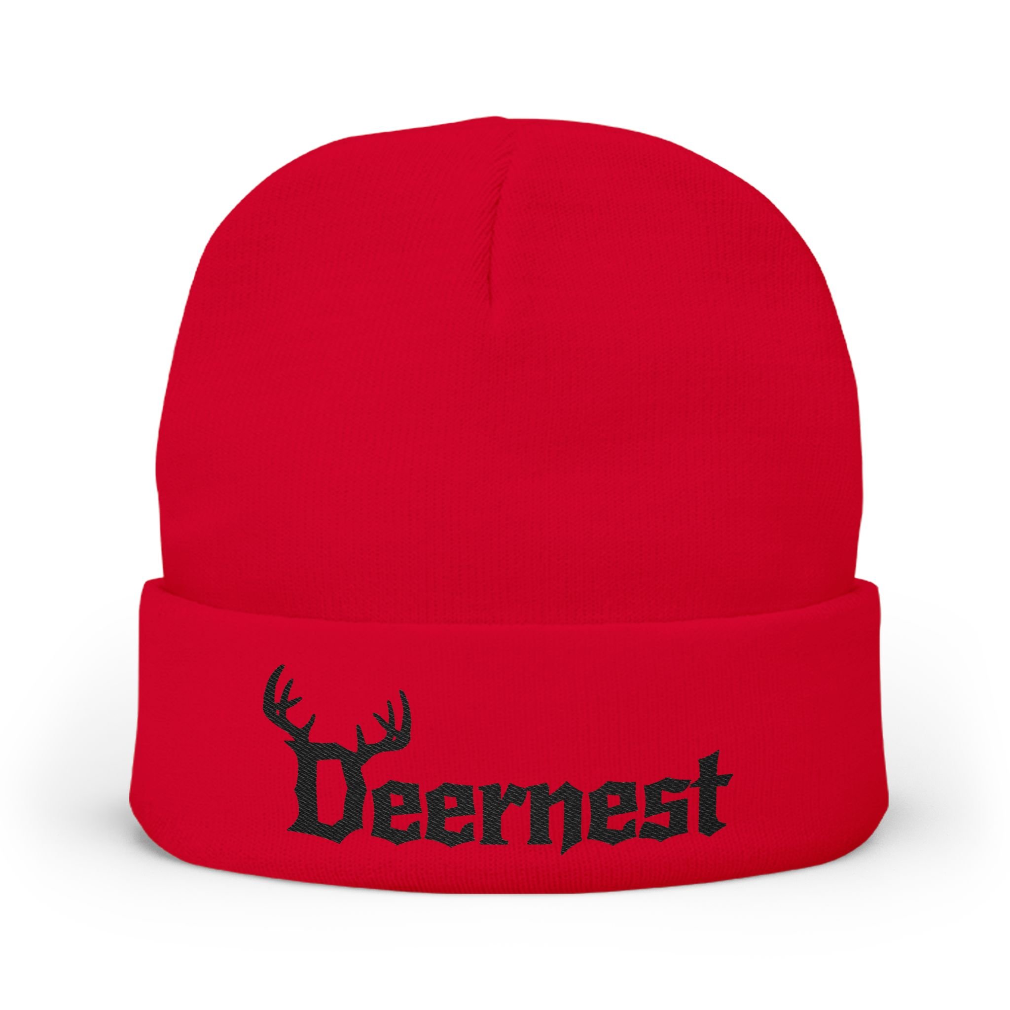 This embroidered knit beanie carries the raw, off-kilter energy of Deernest — a Connecticut grunge/alternative metal band. It feels like a late-night basement show: slightly worn, fiercely personal, and threaded with attitude. The snug, form-fitting silhouette sits low over the brow, keeping hair tucked and ears warm while the embroidered logo adds a tactile, hand-finished touch that reads as authentic band merch rather than glossy merchandizing. Wear it to mosh in damp garages, to ride home on a cold city night, or to layer under a leather jacket for a coffee run that still looks like you just came from rehearsal.
